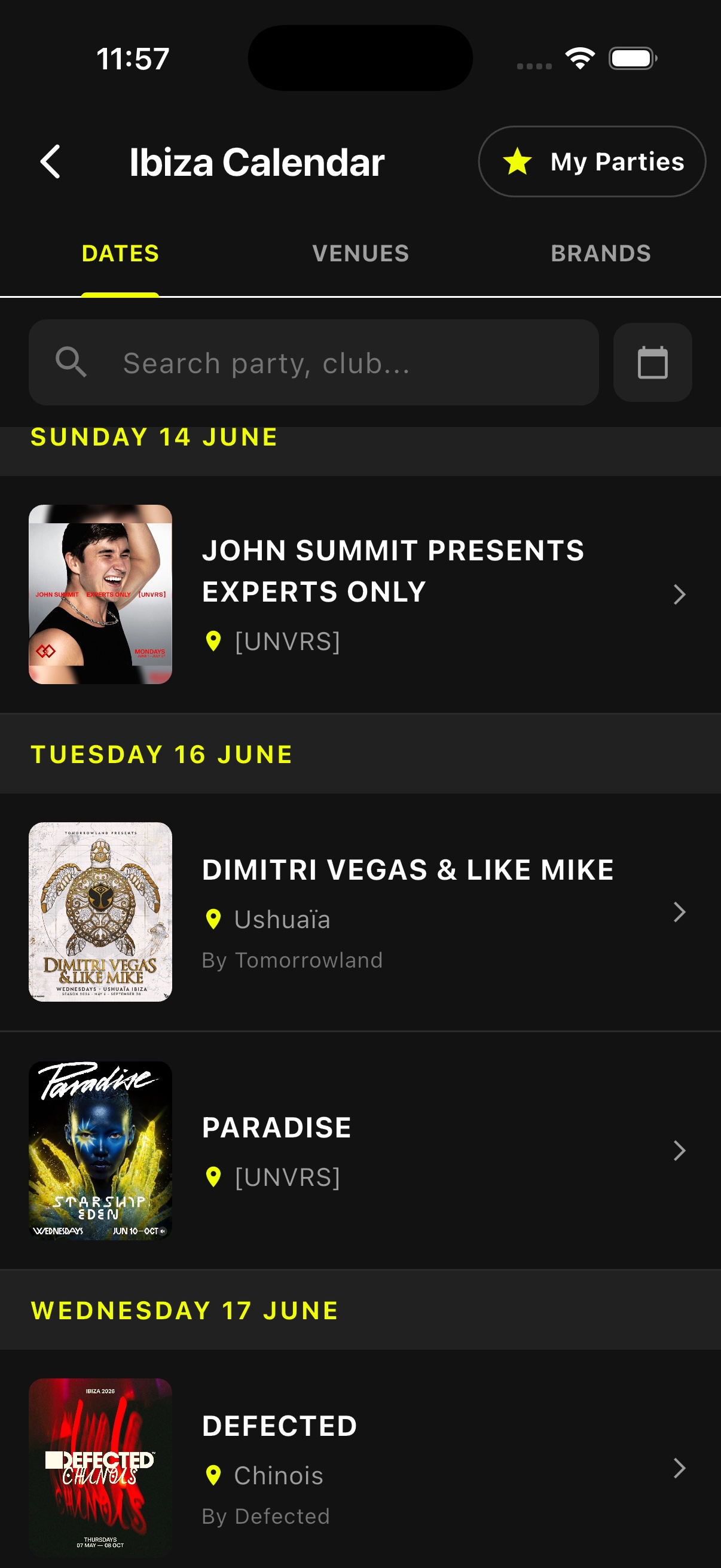 - Browse by date or by club and plan your nights (and days) in Ibiza.