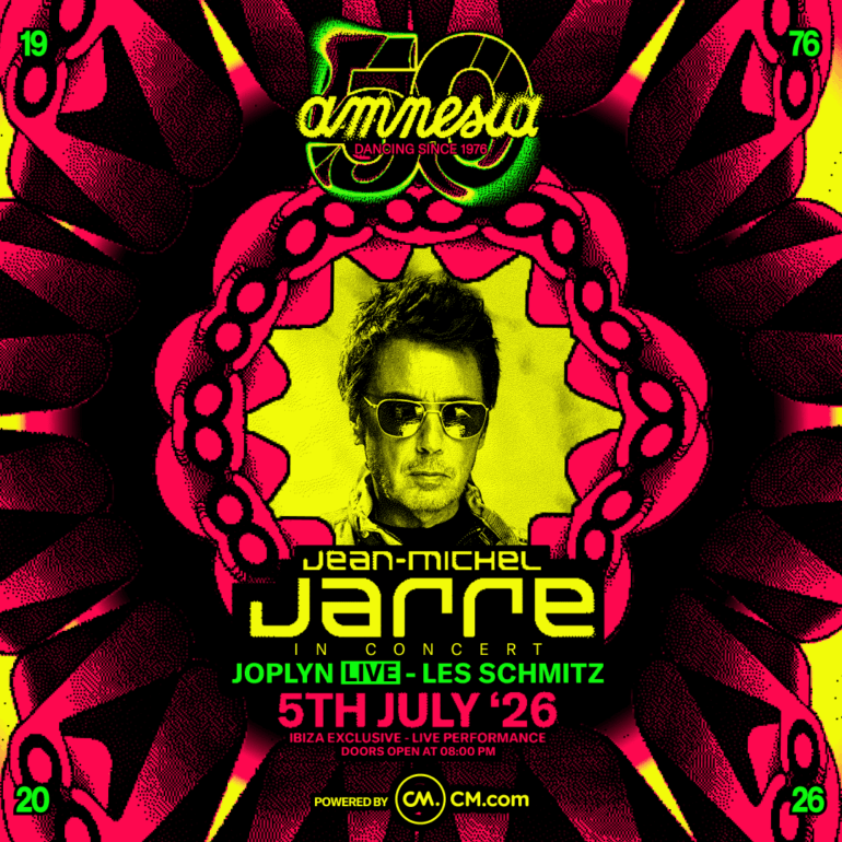 It sounds almost impossible that Jean-Michel Jarre, a figure who has sold over 85 million albums and performed for crowds of 3.5 million people, has never played a proper show in Ibiza. But good things come to those who wait. For Amnesia’s golden jubilee (50 years of shaping the night!), they needed a booking that transcended the usual superstar DJ circuit. They needed a visionary.